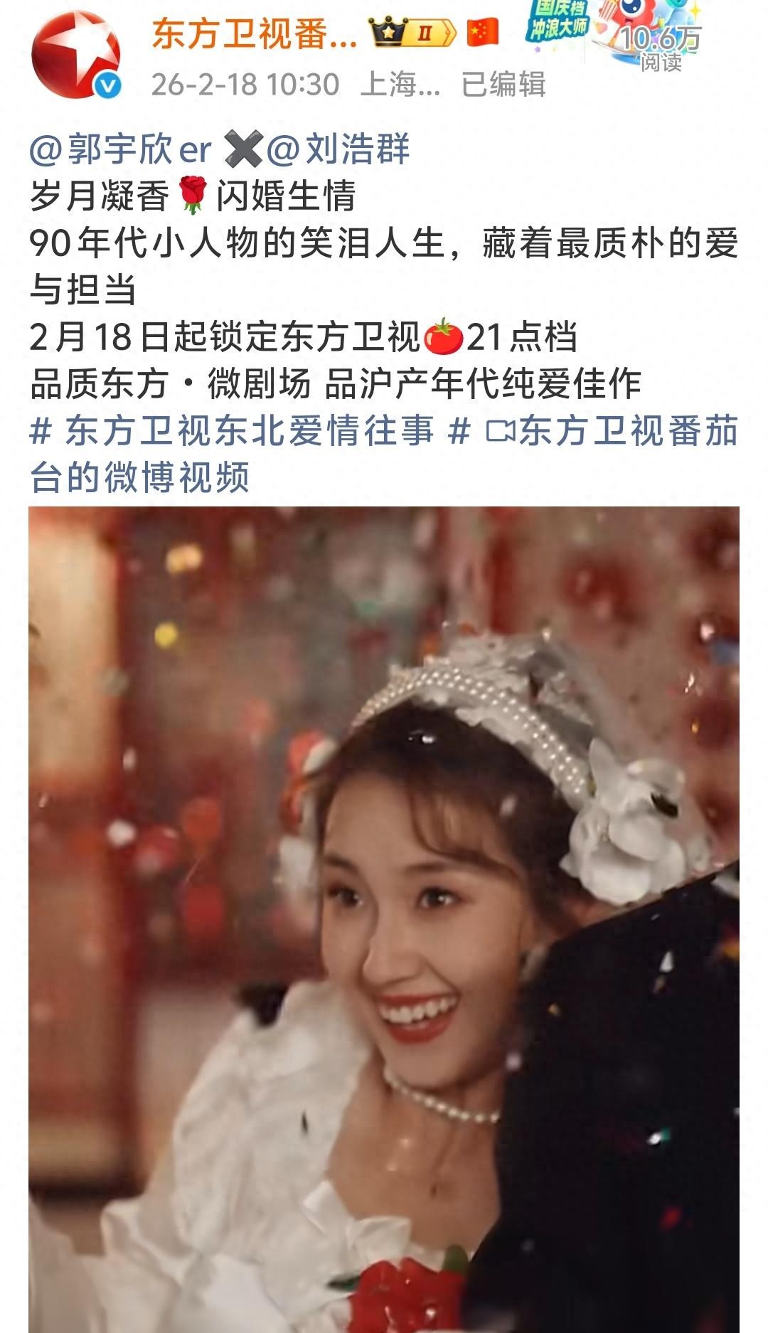 2月18日,微短剧“顶流”郭宇欣主演的竖屏微短剧《东北爱情往事之闪婚玫瑰》(简称《闪婚玫瑰》)登陆东方卫视21点档“品质东方·微剧场”。不过,竖屏的模式加上大屏,导致播出后出现适配难题,“左右添加黑边+嵌入动态字幕”的方式,让实际观看画面明显缩小。