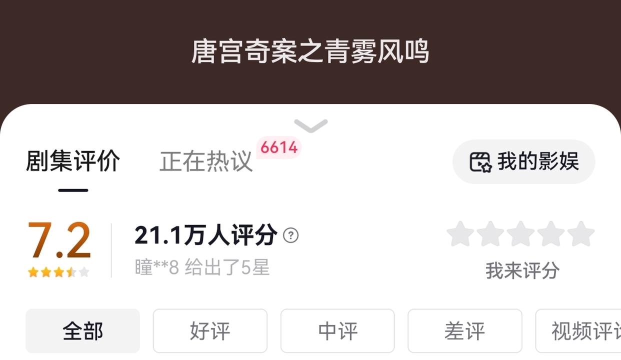 2月24日,有网友发现由白鹿、王星越等主演的电视剧《唐宫奇案之青雾风鸣》的官方抖音账号,在抖音平台为该剧打出了一星差评,此举引发网友热议。