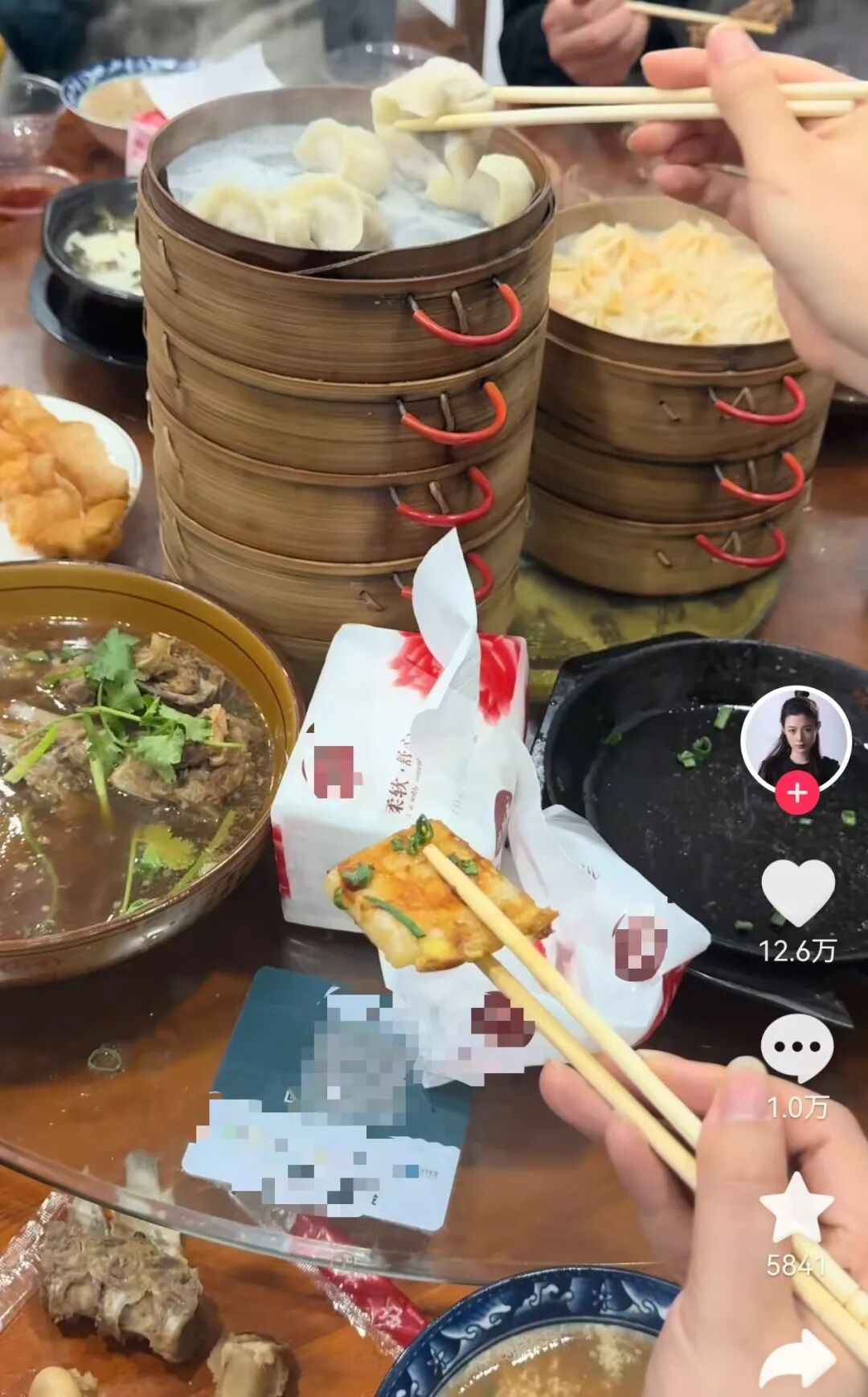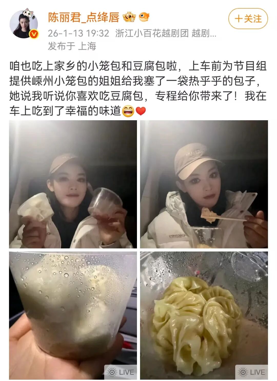 她还曾在个人社交平台晒出工作时吃到家乡的小笼包和豆腐包,并感叹:“幸福的味道。”