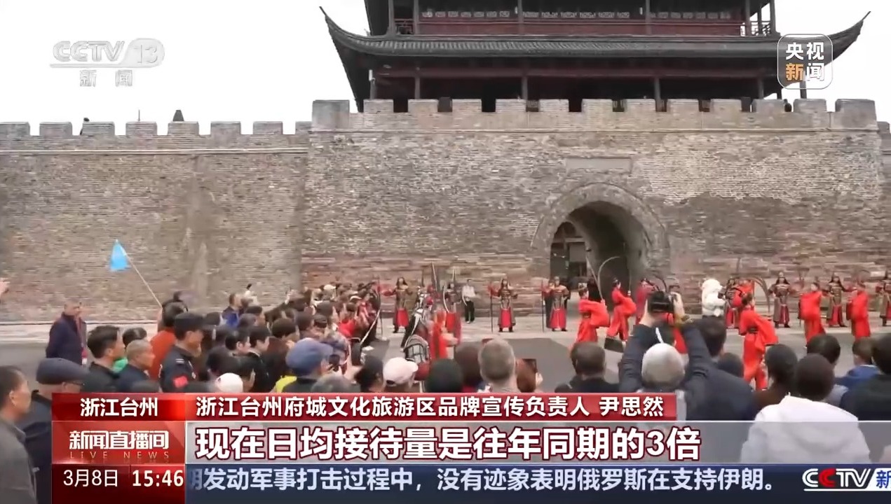 浙江台州府城文化旅游区品牌宣传负责人 尹思然:随着《太平年》的热播,我们先后推出了东湖免票、长城一票游3天的优惠政策,现在日均接待量是往年同期的3倍。