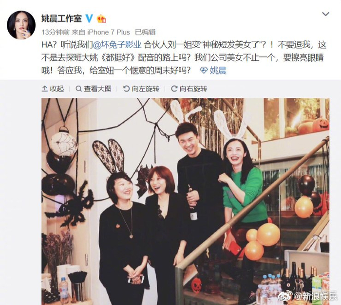 2016年,姚晨曹郁共同创立坏兔子影业公司。
