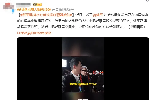 3月19日,有网友在社交平台发文称主持人“戴军曝潜水时曾被拔呼吸器威胁”。
