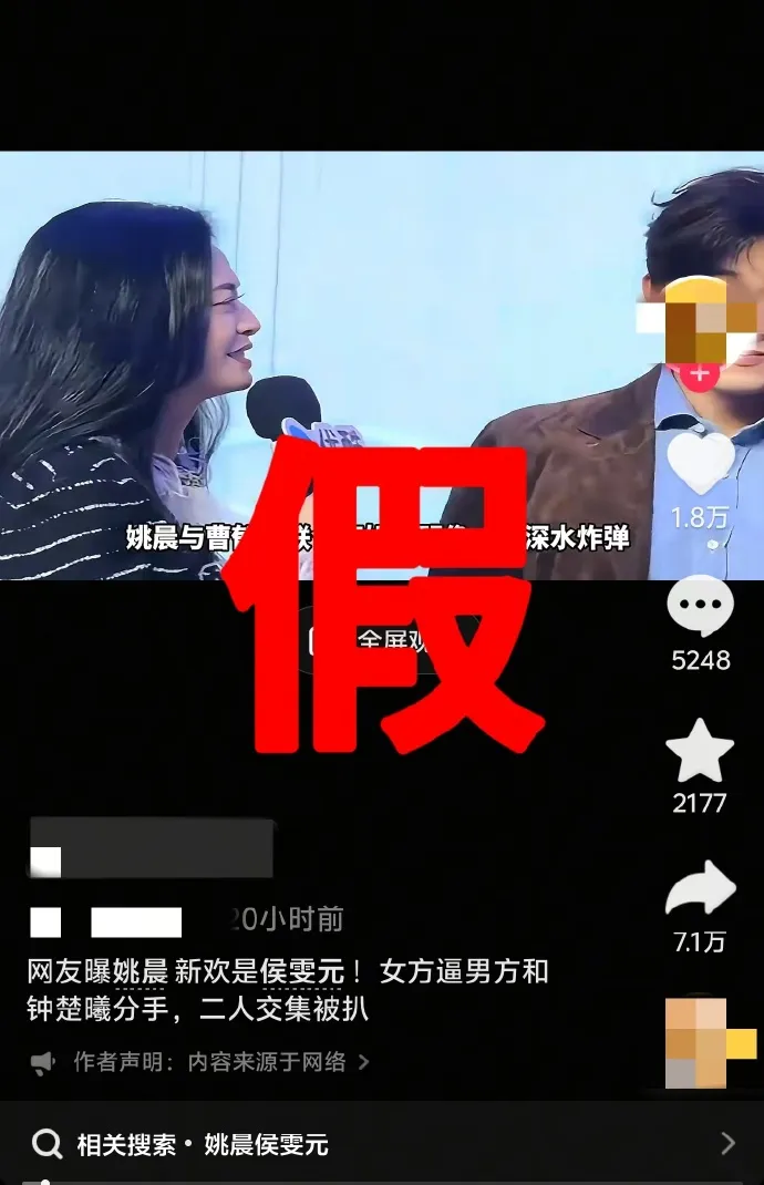 姚晨工作室还晒出多张截图打假,打假“姚晨新欢是侯雯元,女方逼男方和钟楚曦分手”的截图内容。