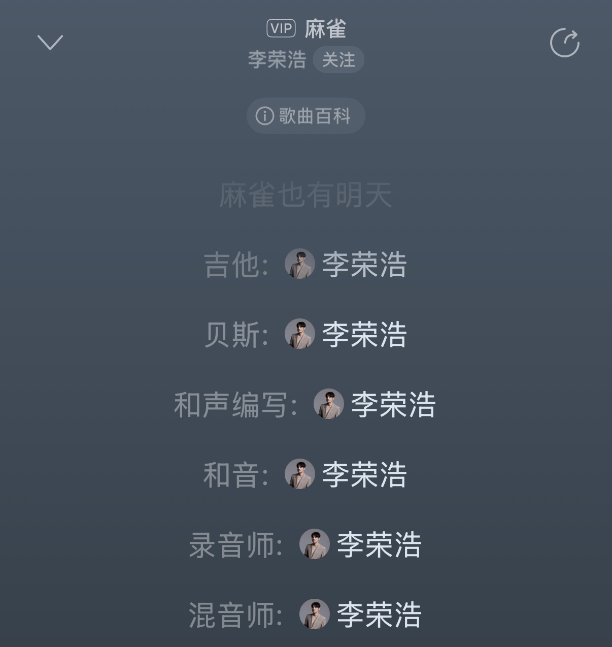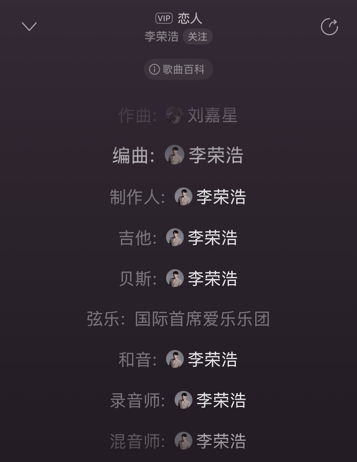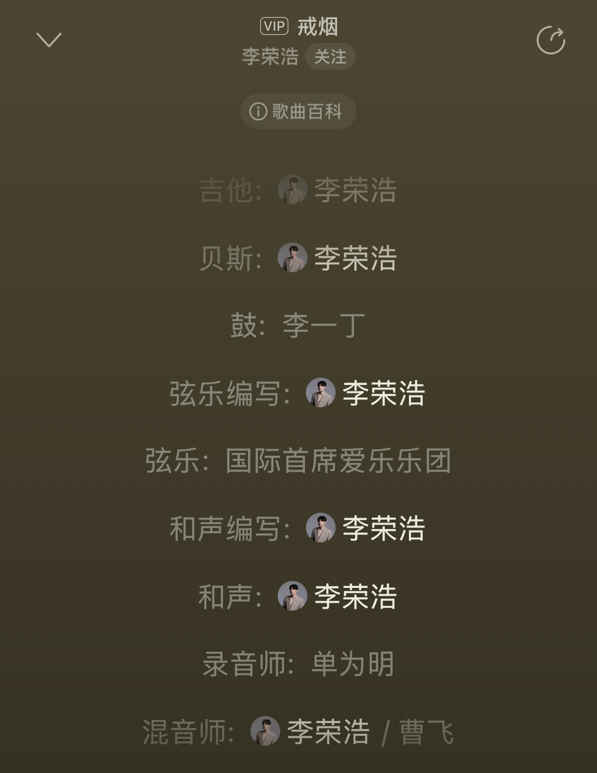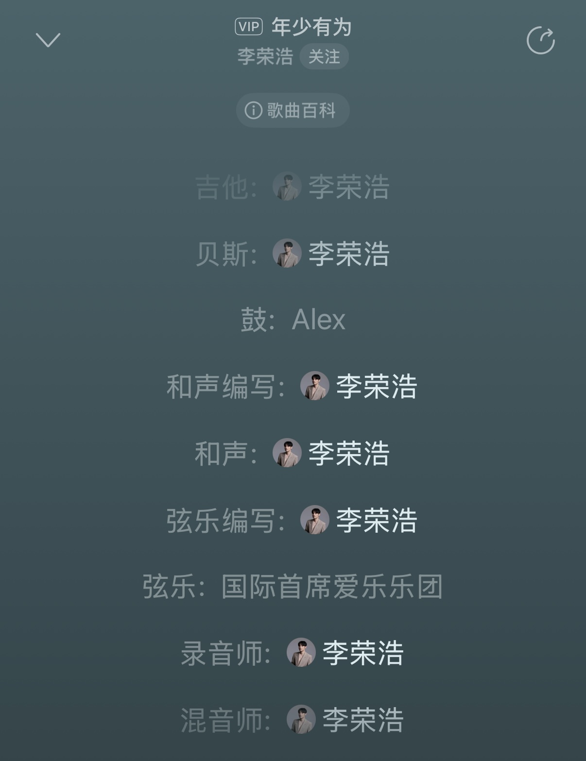 作词、作曲、编曲、制作人、乐器、吉他、贝斯、和声编写、和声、弦乐编写、录音师、混音师、母带制作