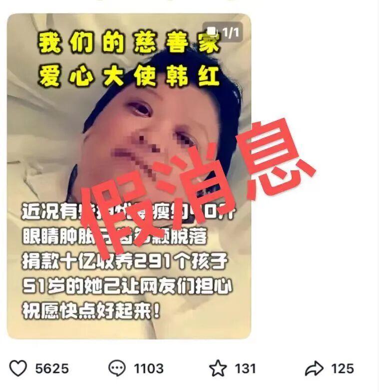 据悉,长期以来,韩红一直受到假新闻的困扰。