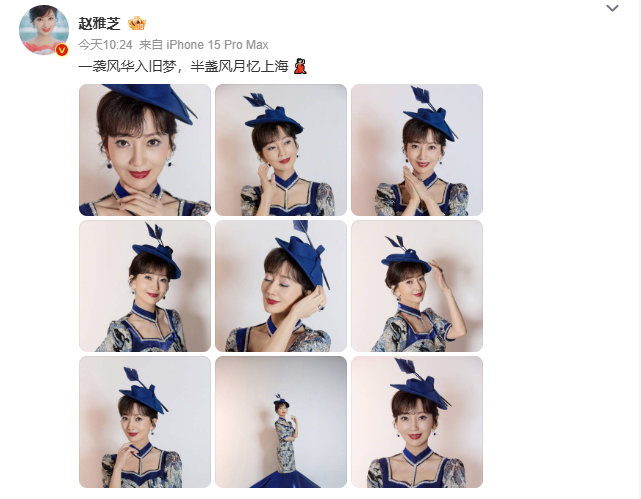 4月7日,演员赵雅芝在社交平台晒照,并配文:“一袭风华入旧梦,半盏风月忆上海。”