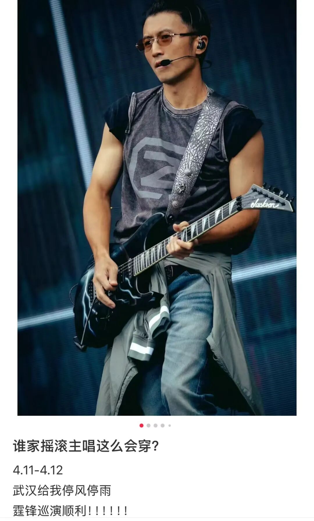 不过,此前强对流天气让武汉连下暴雨,谢霆锋此次又是在体育场演出,这让歌迷非常担心,毕竟,去年9月他在广州开唱遭遇暴雨的场景令人记忆犹新,当时他还曾开玩笑表示无奈:“我只是谢霆锋(停风),我不是谢霆雨(停雨)。”