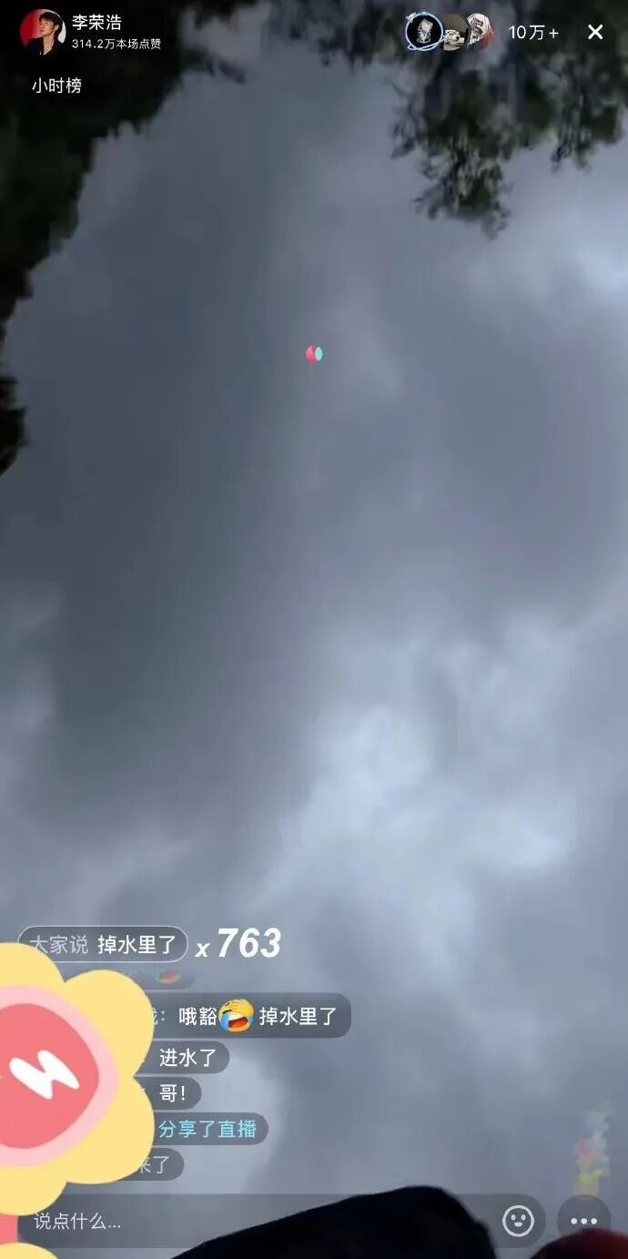 4月21日,李荣浩在户外直播钓鱼过程中,手机意外掉水里了,直播间画面从仰视天空的视角突然中断,10万多名观众在线目睹手机“溺水”。