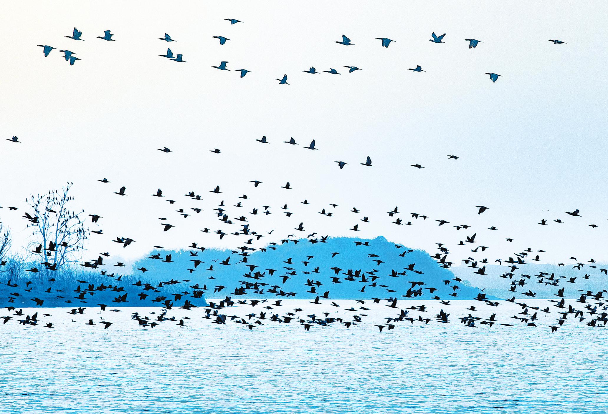 Flocks of birds at Liangzi Lake, Hubei Province