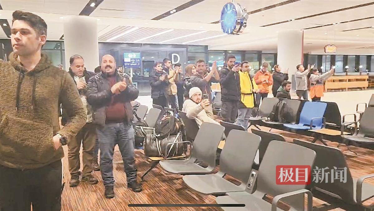 伊斯坦布尔机场,民众为在此转机的中国救援队鼓掌 At Istanbul Airport, people applaud the Chinese rescue team who were transiting there