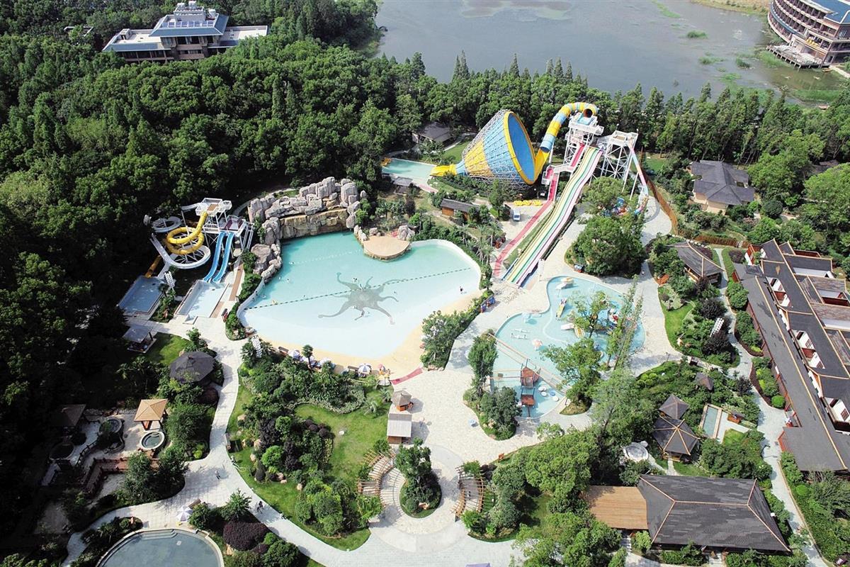 如今,整个度假村内拥有128个原汤特色泡池。与其他温泉不同,景区内层峦叠嶂,大型植被、生态湖、生态鸟岛、阁亭连廊等观光胜景掩映其间。人在汤中泡,鸟在头顶鸣,好不惬意。