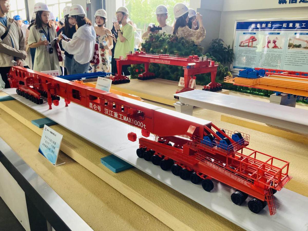 A model of Kunlun, one of the worlds only two mobile bridge building machines that are able to both transport and erect 40-meter box girders, is displayed at the equipment factory of Hanjiang Heavy Industry in Xiangyang, Hubei province on Tuesday. [Photo by Wang Qingyun/chinadaily.com.cn]