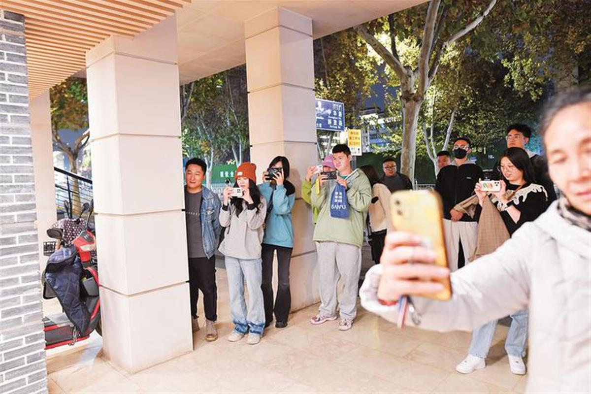 游客拍摄汉阳门乐团演奏 Tourists record a performance by the Hanyang Gate Orchestra