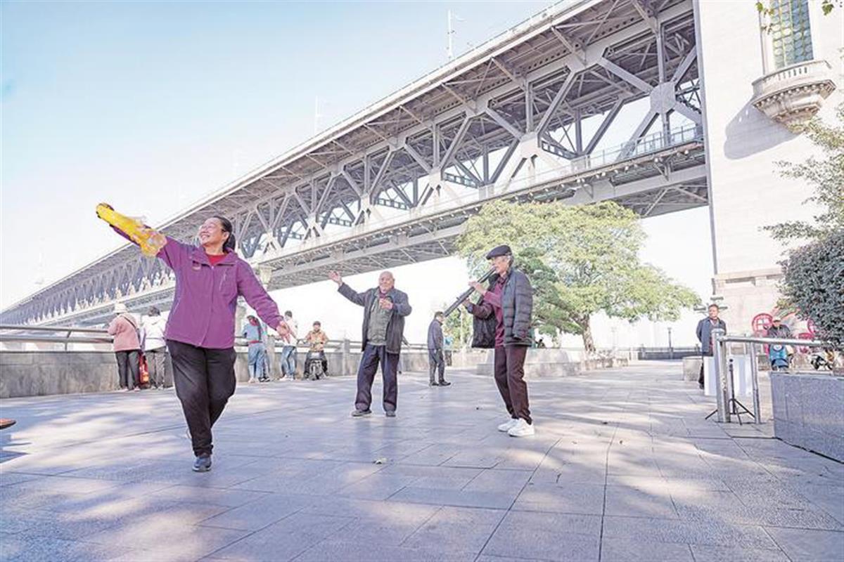 Members of the Hanyang Gate Orchestra in Wuchang District introduced that the orchestra, established in 2018, now has more than 70 members from the three towns of Wuhan. They rehearse and perform here almost every night. “There are many tourists here, so when we play, we have to showcase the spirit of the people of Wuhan!” said Mr. Zhang, the band leader.