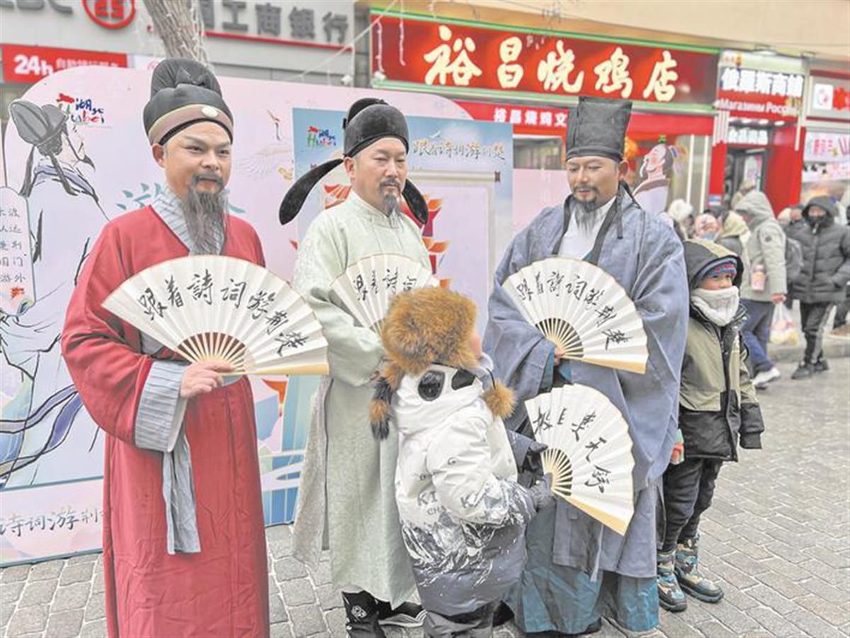 At the popular tourist spot “Exploring Jingchu through poetry”, actors portraying Qu Yuan, Li Bai and Su Dongpo gathered in Central Street to recite Qu Yuan’s Li Sao (Sorrow After Departure), Li Bai’s Qiang Jin Jiu (Invitation to Wine), Su Dongpo’s Nian Nu Jiao Chibi Huaigu (Memories of the Past at Red Cliff)… During their recital, audience members also recited in unison which gave them an experience of the charming poetry, and also a glimpse of Jingchu.
