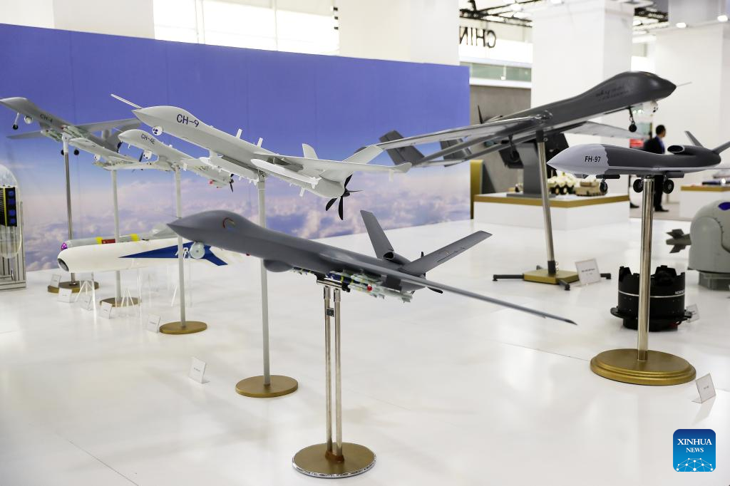 Models are displayed at the second edition of the World Defense Show in Riyadh, Saudi Arabia, Feb. 5, 2024. Saudi Arabia kicked off Sunday the second edition of the World Defense Show in the capital Riyadh, with Chinese defense delegation and Chinese Air Force attending. (Xinhua/Wang Dongzhen)