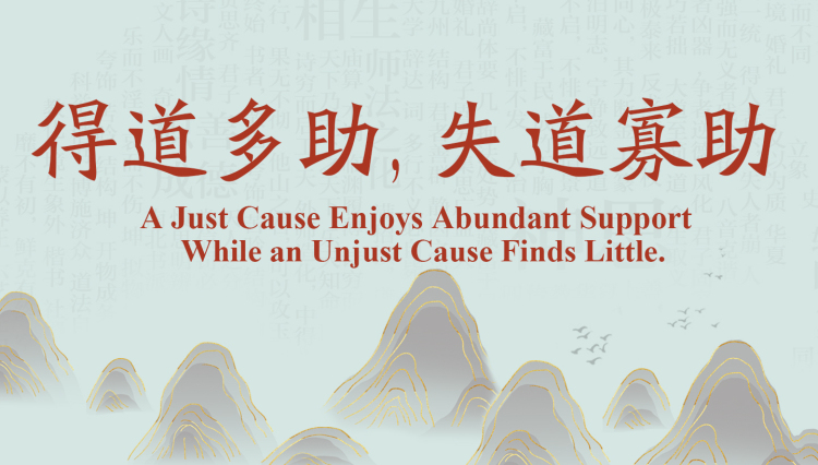 The Chinese phrasededao(得道) or “obtaining Dao” here refers to having “a just cause.” Since ancient times Chinese people have had a high esteem for justice and have thought of justice as a decisive factor determining success or failure in war and other enterprises. Only by upholding justice can one achieve internal unity and popular support, which are essential for the success of a war or a cause; otherwise, popular support is lost and the ruler or leader becomes too isolated and helpless to succeed. This is a specific expression of the Chinese notion of “governance based on virtue” and the spirit of “civilization.”