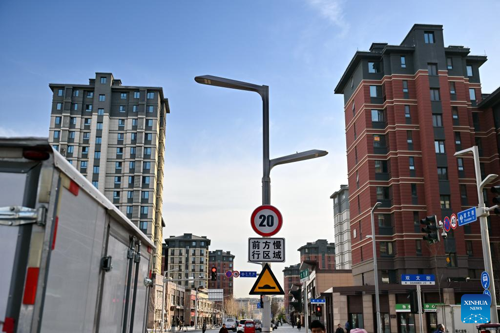 This photo taken on March 29, 2024 shows a smart light pole in Rongdong District of Xiong'an New Area, north China's Hebei Province. In April 2017, China announced a plan to establish the Xiong'an New Area, which spans the Rongcheng, Anxin and Xiongxian counties, as well as some adjacent areas in north China's Hebei Province.