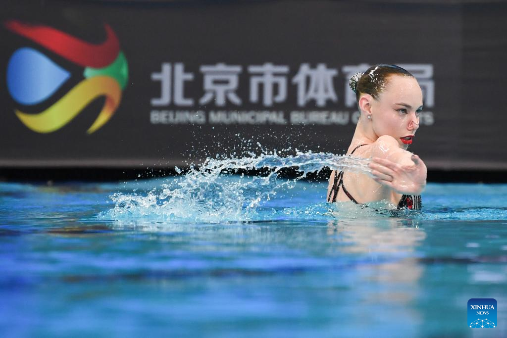 Neutral individual athlete Vasilina Khandoshka competes during the women's solo technical event at the World Aquatics Artistic Swimming World Cup 2024 in Beijing, capital of China, April 5, 2024. (Xinhua/Ju Huanzong)
