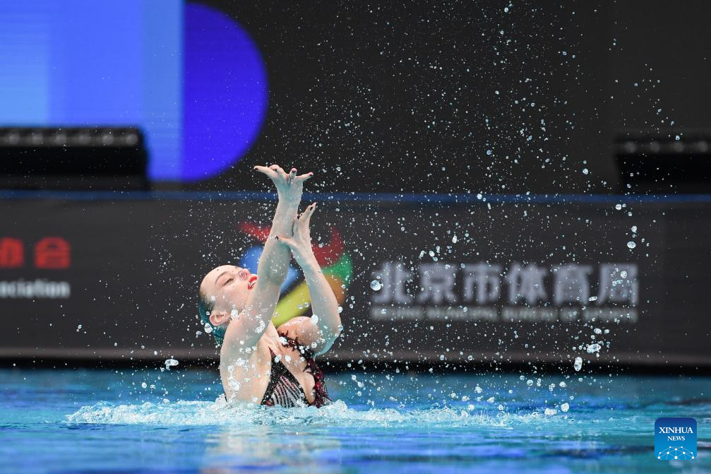 About 100 elite artistic swimmers from 14 teams all over the world are competing in the three-day World Cup in Beijing. China will compete in all 11 events, with its top swimmers focusing on the team free and its second-tier athletes featuring in the other 10 events.