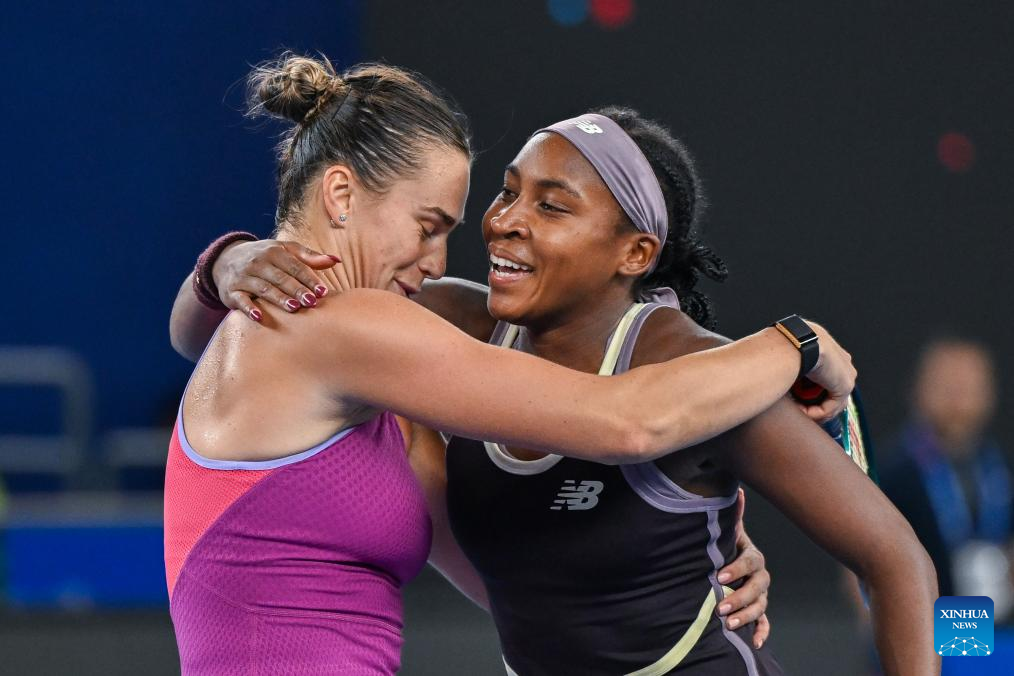 WUHAN, Oct. 12 (Xinhua) -- World No. 2 Aryna Sabalenka beat No. 4 Coco Gauff 1-6, 6-4, 6-4 in the semifinal, advancing to her third straight Wuhan final, while China's Zheng Qinwen defeated Wang Xinyu 6-3, 6-4 in the first all-Chinese semifinal at a WTA 1000.