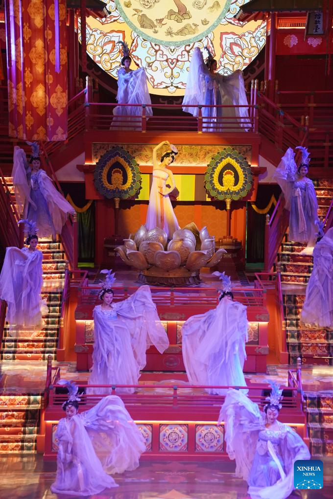 Artists stage a performance at a Tang Dynasty-themed scenic area in Xi'an, northwest China's Shaanxi Province, May 19, 2024.