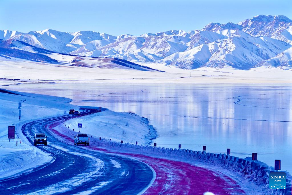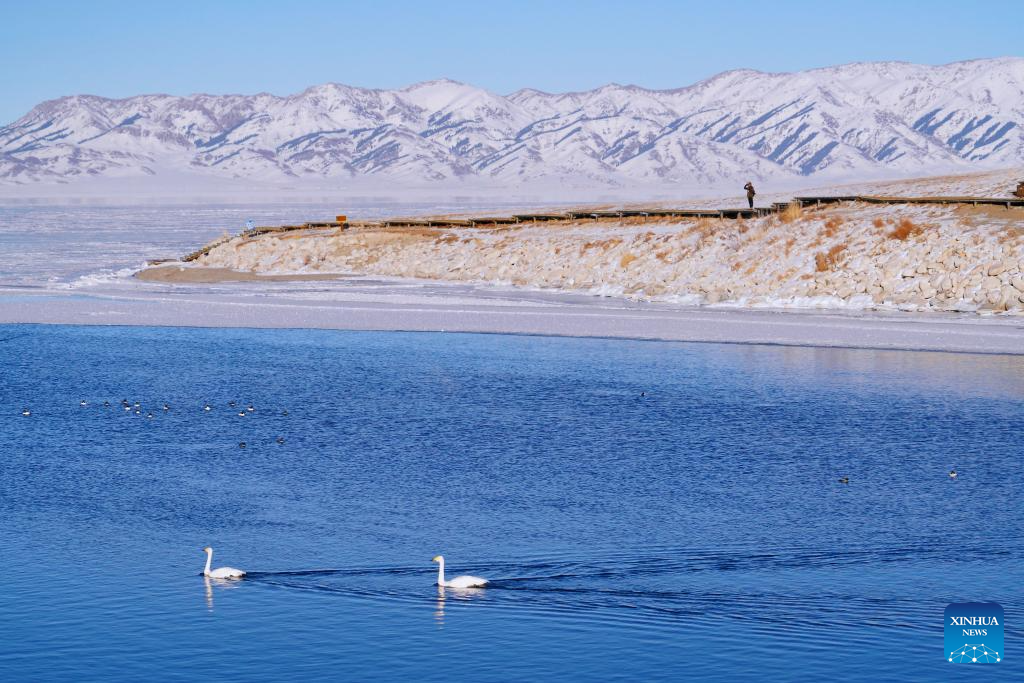 This photo shows a view of Sayram Lake in Bortala Mongolian Autonomous Prefecture, northwest China's Xinjiang Uygur Autonomous Region, Jan. 14, 2025. (Xinhua/Du Juanjuan)