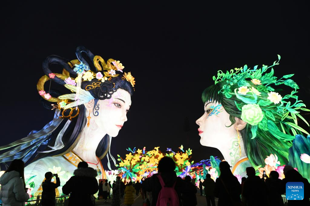 Lanterns are seen during the 31st Zigong International Dinosaur Lantern Show in Zigong, southwest China's Sichuan Province, Jan. 17, 2025. The 31st Zigong International Dinosaur Lantern Show kicked off here on Friday. This year's lantern show features 12 groups of super-large light sets, seven groups of large light sets and more than 200 groups of small and medium-sized light sets. The scale of the lantern displays has set a new record in the history of the Zigong International Dinosaur Lantern Show. (Xinhua/Xu Bingjie)