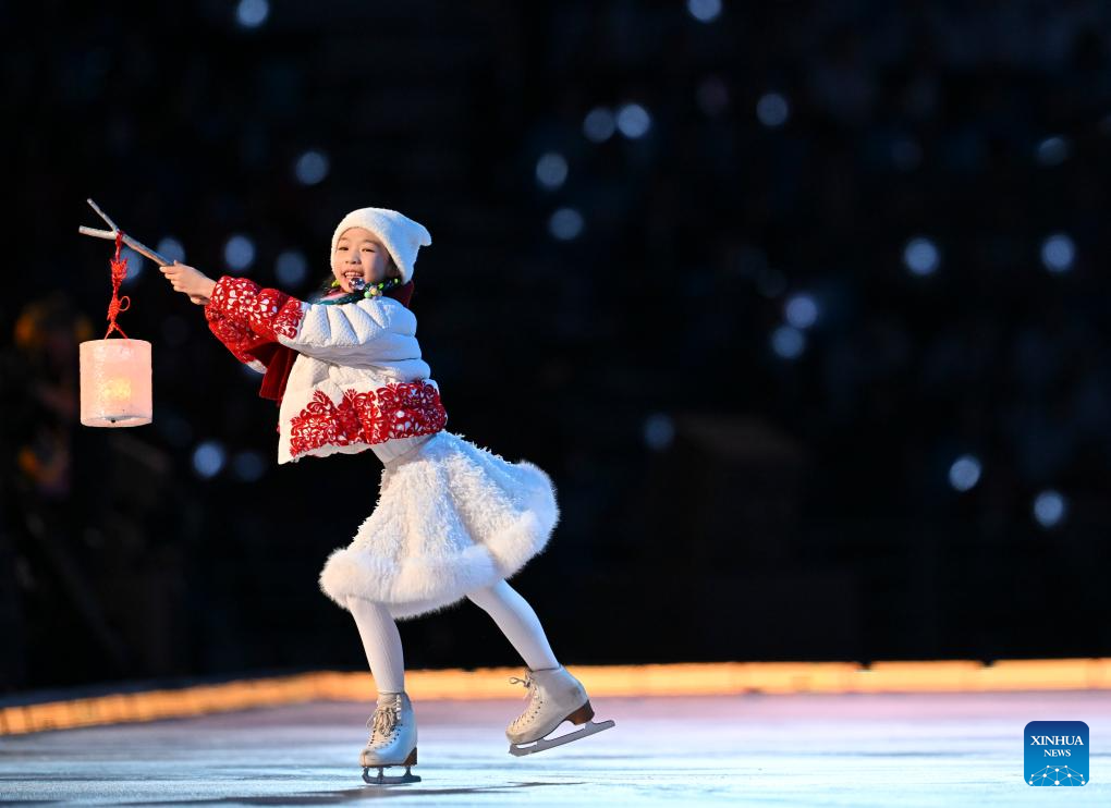 A child performs during the opening ceremony of the 9th Asian Winter Games in Harbin, northeast China's Heilongjiang Province, Feb. 7, 2025. (Xinhua/Huang Wei)