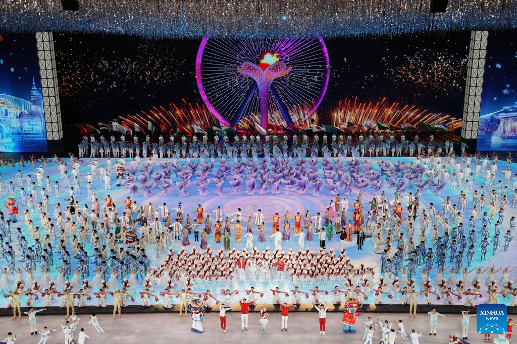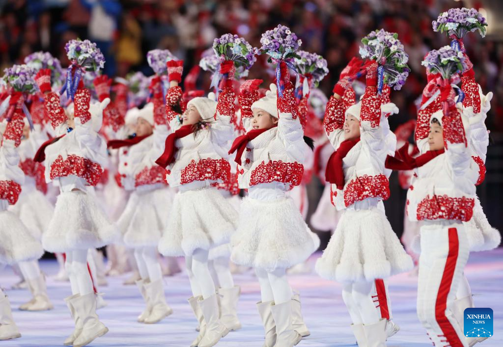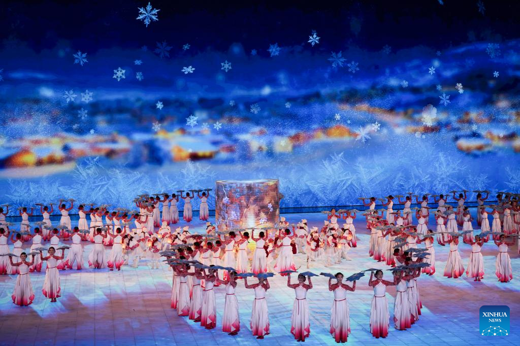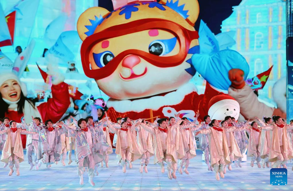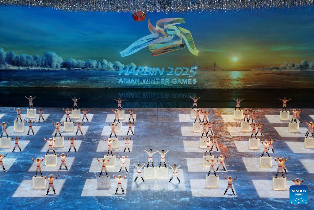 Artists perform during the opening ceremony of the 9th Asian Winter Games in Harbin, northeast China's Heilongjiang Province, Feb. 7, 2025. (Xinhua/Huang Wei)