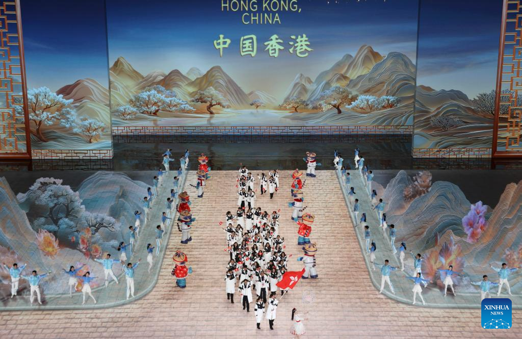Delegation of China's Hong Kong parade during the opening ceremony of the 9th Asian Winter Games in Harbin, northeast China's Heilongjiang Province, Feb. 7, 2025. (Xinhua/Chen Yichen)