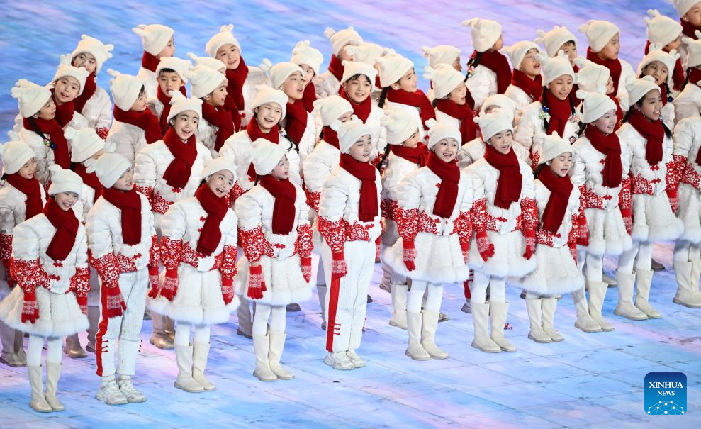 Children perform during the opening ceremony of the 9th Asian Winter Games in Harbin, northeast China's Heilongjiang Province, Feb. 7, 2025. (Xinhua/Huang Wei)