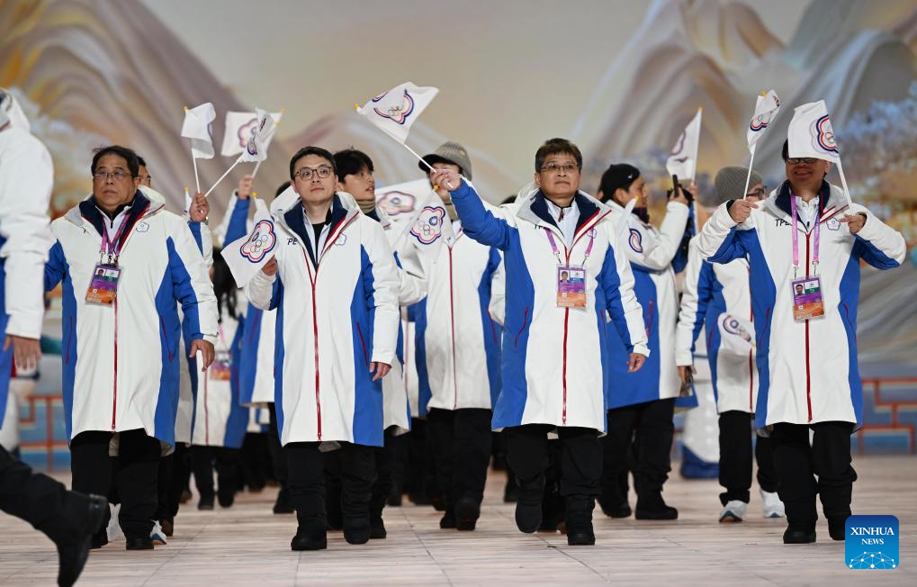 Delegation of Chinese Taipei parade during the opening ceremony of the 9th Asian Winter Games in Harbin, northeast China's Heilongjiang Province, Feb. 7, 2025. (Xinhua/Xie Jianfei)