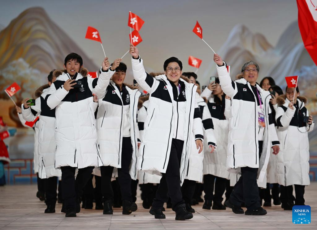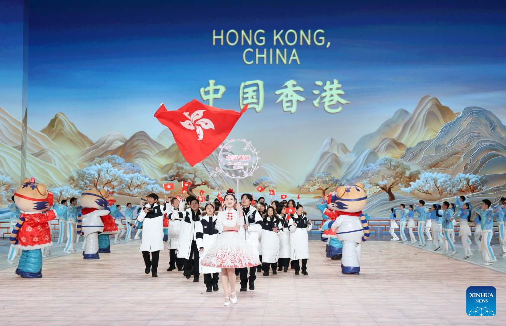 Delegation of China's Hong Kong parade during the opening ceremony of the 9th Asian Winter Games in Harbin, northeast China's Heilongjiang Province, Feb. 7, 2025. (Xinhua/Huang Wei)