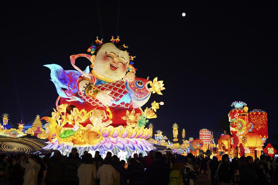 People visit the Yuyuan Garden Lantern Festival at Yuyuan Garden in east China's Shanghai, Jan. 1, 2025. (Xinhua/Liu Ying)