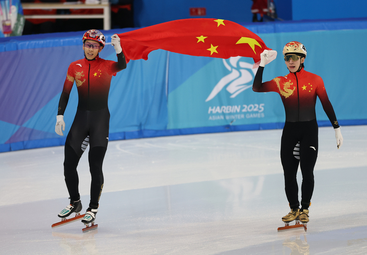 HARBIN, Feb. 8 (Xinhua) -- South Korea won the short track speed skating 2,000m mixed team relay to take the first gold medal of the 2025 Asian Winter Games (AWG) on Saturday, while Li Lei took China's historic 100th gold in the Games' history by triumphing in the cross-country skiing women's sprint classic final.