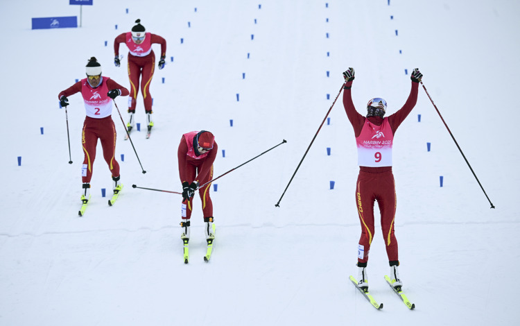 China dominated in the women's cross-country skiing sprint classic, with all four competitors advancing to the final. Veteran Li achieved victory in three minutes and 25.25 seconds, marking China's 100th gold medal in Asian Winter Games history. Her teammate Meng Honglian secured the silver in 3:25.91, while another Chinese Dinigeer Yilamujiang took the bronze.
