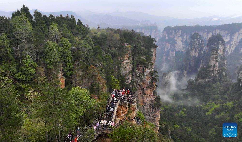 Tourists visit Zhangjiajie National Forest Park in central China's Hunan Province, May 2, 2024.