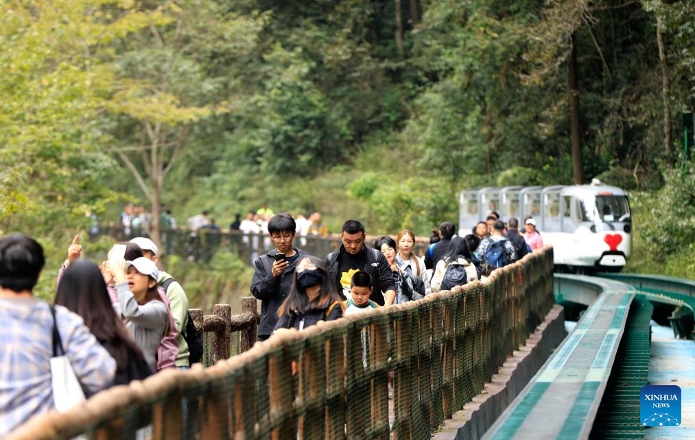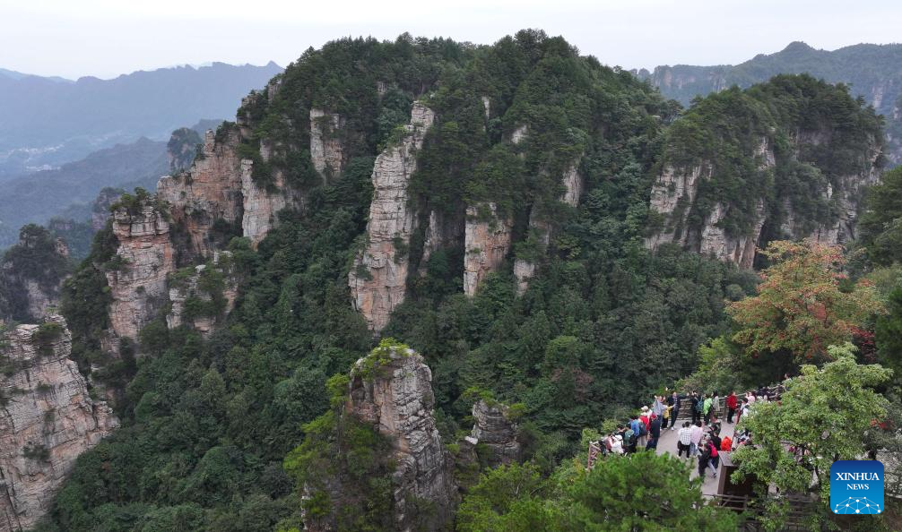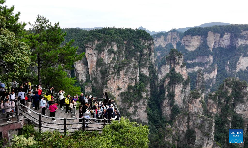 Tourists visit Zhangjiajie National Forest Park in central China's Hunan Province, Oct. 3, 2024.