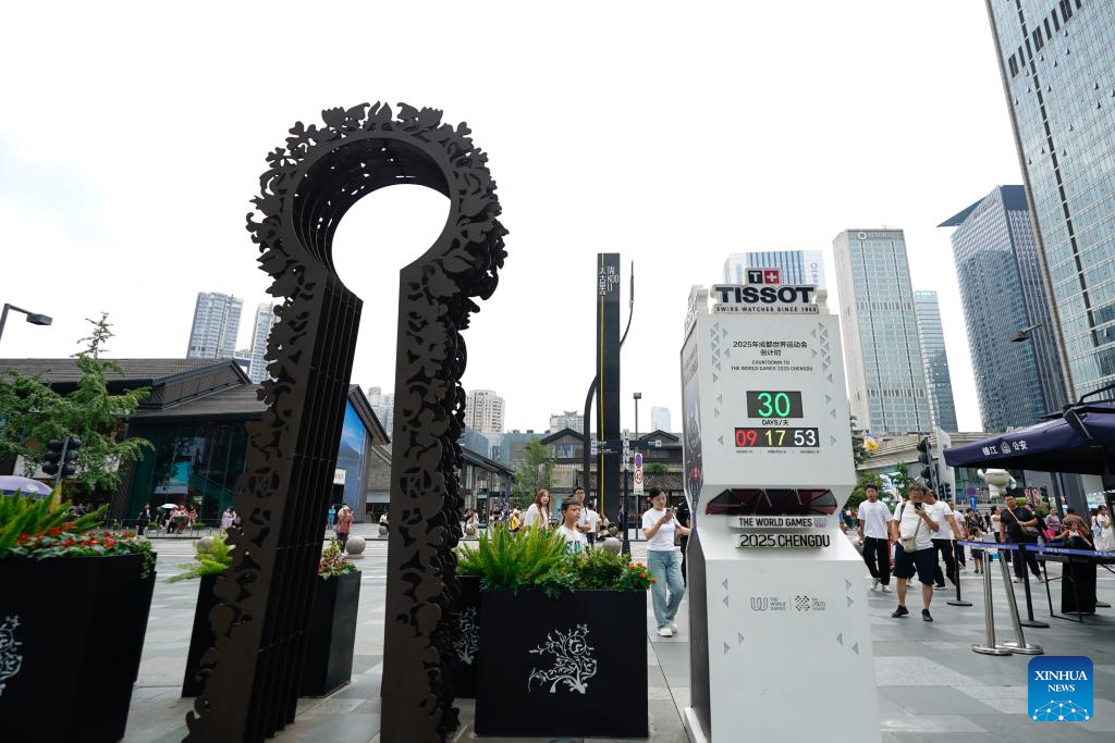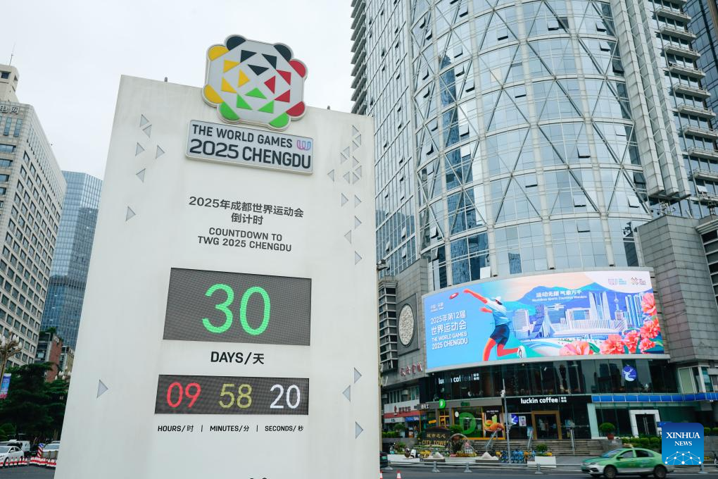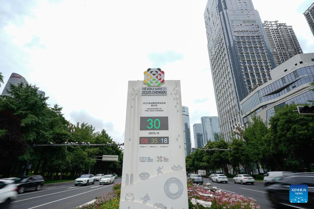This photo taken on July 8, 2025 shows a countdown clock marking 30 days to go for the World Games 2025 in Chengdu, southwest China's Sichuan Province. The Games hit the 30-day countdown mark today and will be held from August 7 to 17. (Xinhua/Xu Bingjie)