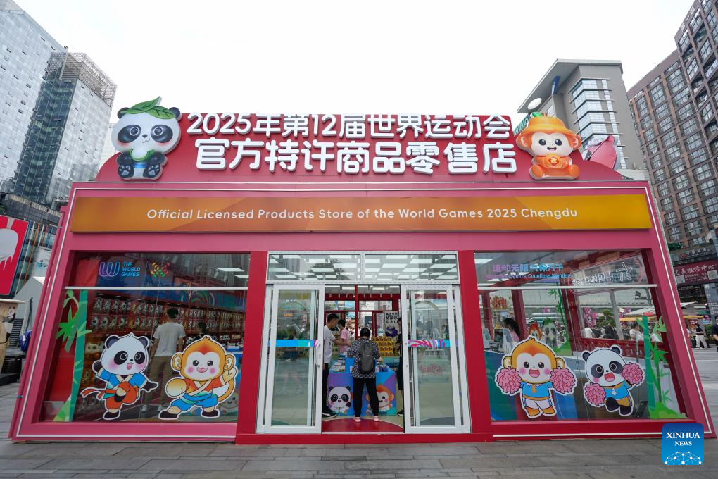 This photo taken on July 8, 2025 shows an official licensed products store for the World Games 2025 in Chengdu, southwest China's Sichuan Province. The Games hit the 30-day countdown mark today and will be held from August 7 to 17. (Xinhua/Xu Bingjie)