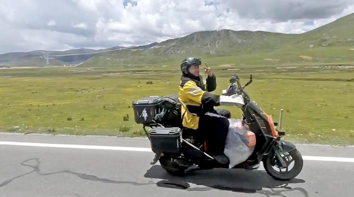 Dressed in iconic delivery worker gear and riding an electric scooter, one man is on a solo bikepacking trip from Hengshui, Hebei to Lhasa, Xizang, delivering food along the way. Zhang Shiliang, a delivery rider based in Hengshui, embarked on his journey to Xizang on June 18. On July 9, Zhang told Jimu News that he had reached Nyingchi, Xizang, and was about 3-day journey or 400 kilometers away from his destination, Lhasa. Along the way, he not only enjoyed the scenery but also delivered food in several cities mid-journey to cover his travel expenses.