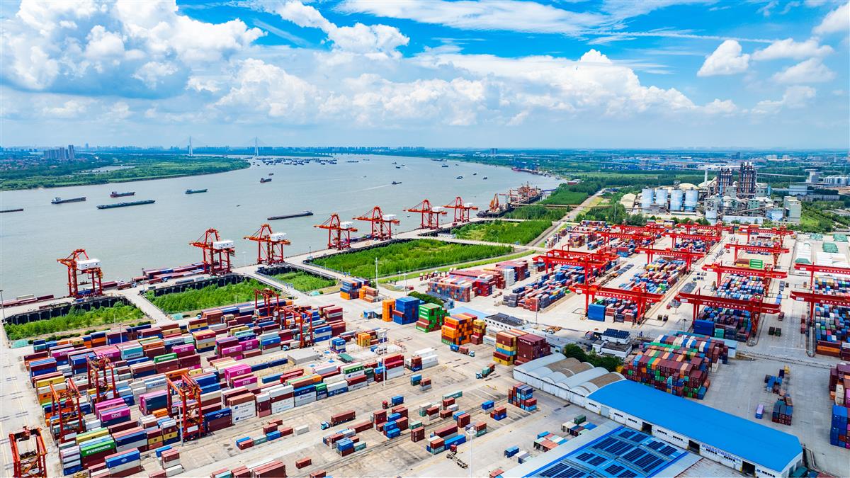 Photo shows bustling operations attheWuhan Yangluo Port in Wuhan, Hubei Province. In the first half of 2025,the ports in Hubeihandled 402 million tonnes of cargo throughput, up 13.1 percent year on year, while container throughput reached 1.3634 million TEUs, reflecting a 3.9-pct increase compared to the same period last year. (Photo: Hubei Daily / He Yuxin)