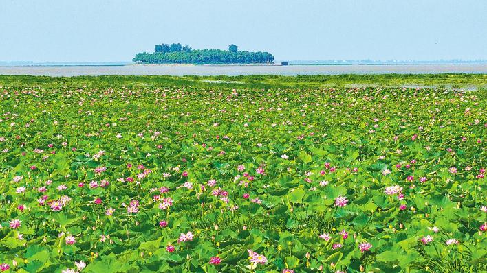 Lotus flowers are in full bloom atHonghu Lake inHubei Province. (Photo: Hubei Daily / Ni Na)
