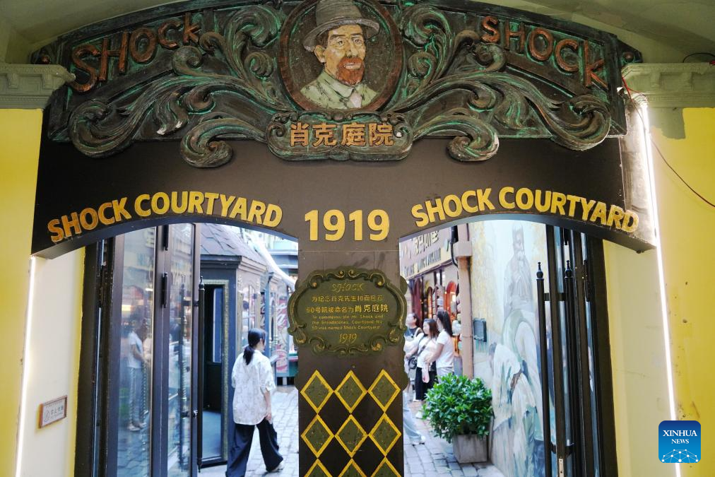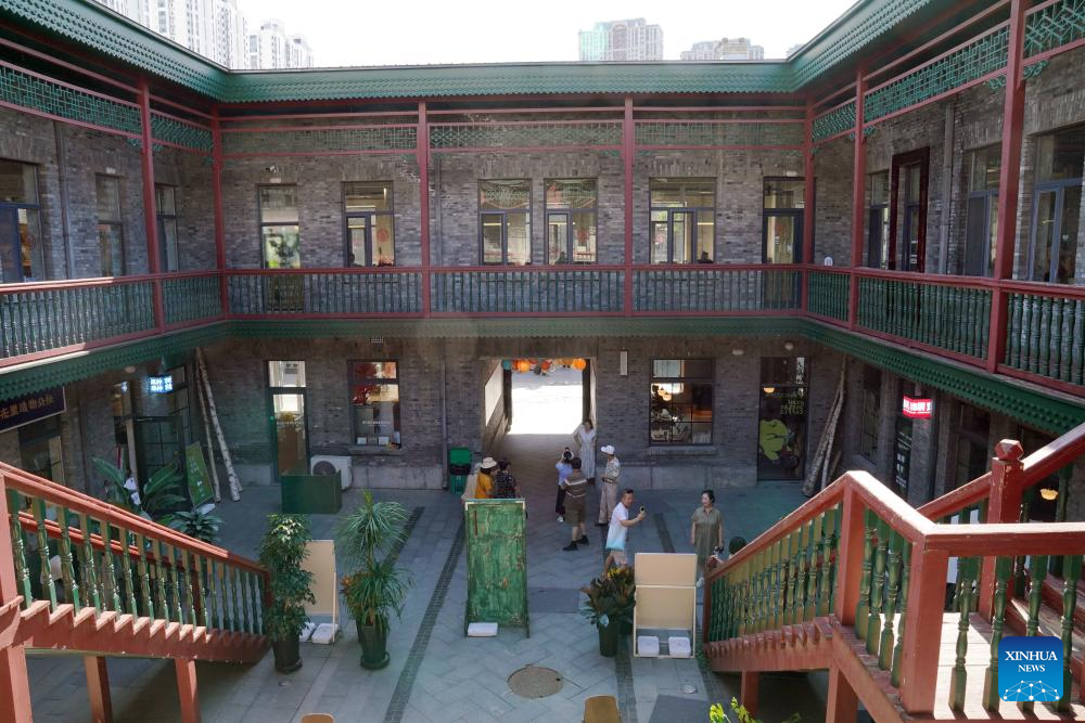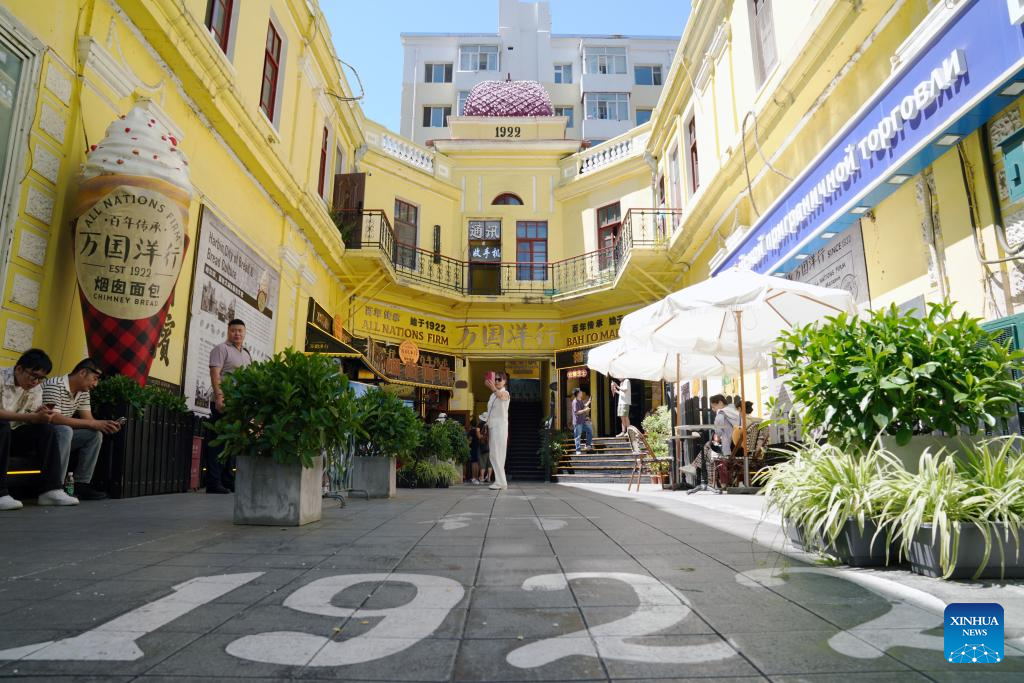 Tourists visit the Shock Courtyard on the Central Street in Harbin, northeast China's Heilongjiang Province, on July 30, 2025. While much of China swelters under scorching summer heat, Harbin, capital of northeast China's Heilongjiang Province, is drawing visitors with a refreshing contrast, offering a chilly escape fueled by its pleasantly cool climate.