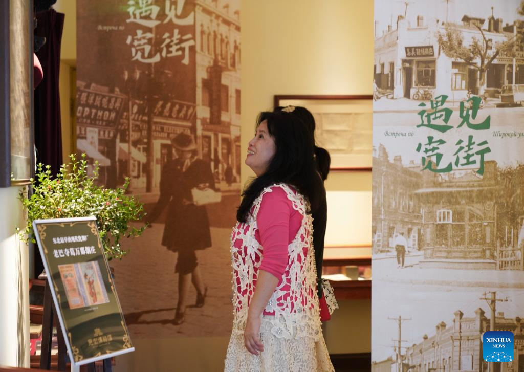 A tourist visits a museum on the Central Street in Harbin, northeast China's Heilongjiang Province, on Aug. 5, 2025. While much of China swelters under scorching summer heat, Harbin, capital of northeast China's Heilongjiang Province, is drawing visitors with a refreshing contrast, offering a chilly escape fueled by its pleasantly cool climate.