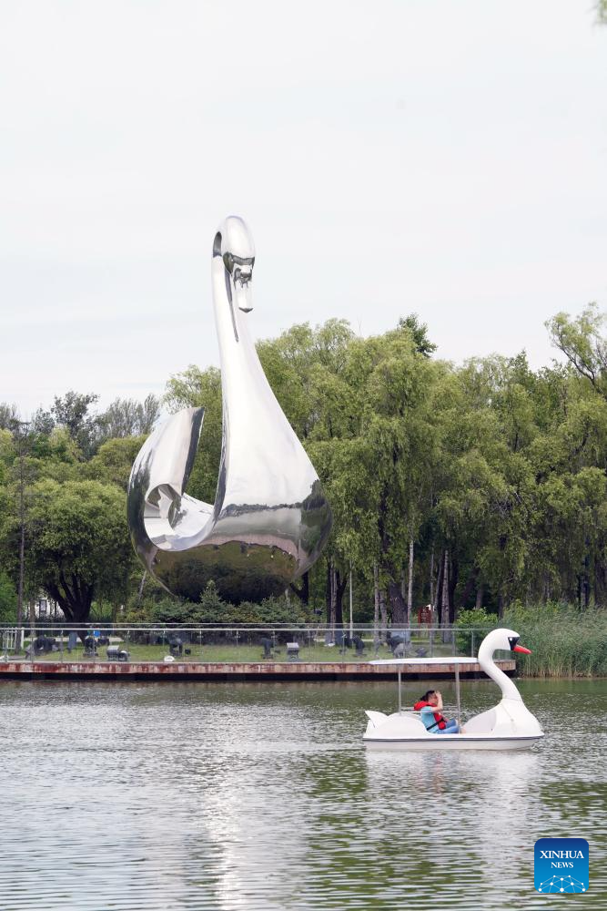 A tourist takes a boat tour at the Sun Island Scenic Area in Harbin, northeast China's Heilongjiang Province, on July 31, 2025. While much of China swelters under scorching summer heat, Harbin, capital of northeast China's Heilongjiang Province, is drawing visitors with a refreshing contrast, offering a chilly escape fueled by its pleasantly cool climate.
