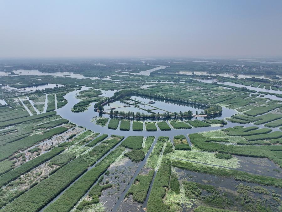 An aerial drone photo taken on June 11, 2025 shows a view of Baiyangdian Lake, Xiong'an New Area of north China's Hebei Province. (Xinhua/Mu Yu)