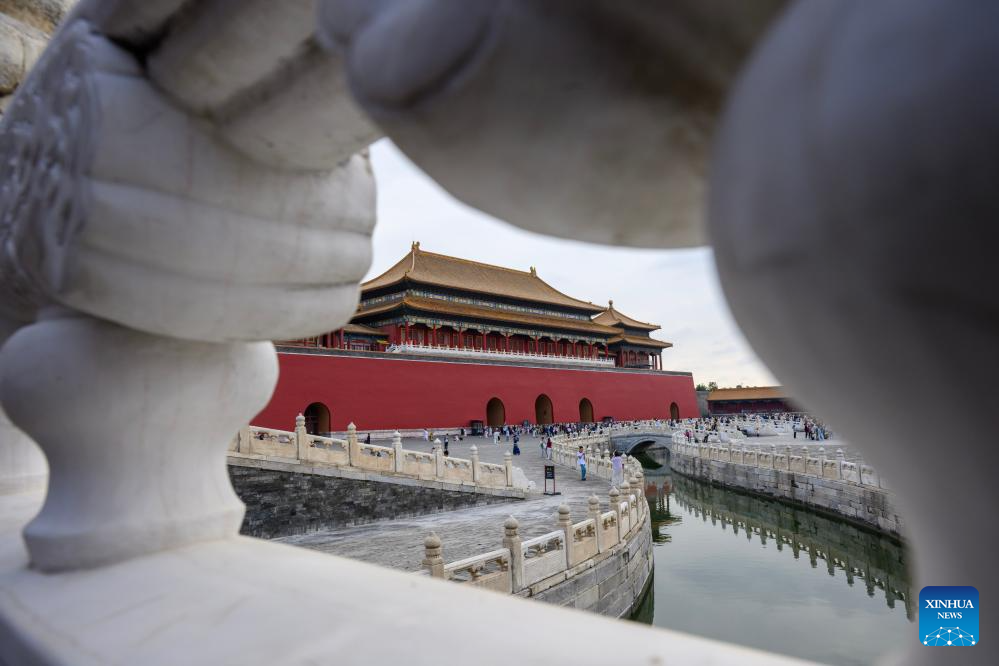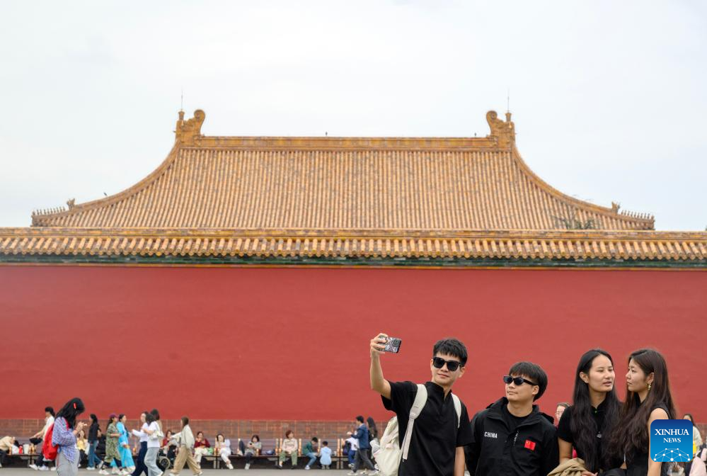 Tourists visit the Palace Museum in Beijing, capital of China, Oct. 2, 2025. This year marks the 100th anniversary of the founding of China's Palace Museum, also known as the Forbidden City. The Forbidden City, which was constructed between 1406 and 1420, was once the imperial palaces of the Ming (1368-1644) and Qing (1644-1912) dynasties. It is a UNESCO inscribed World Cultural Heritage and has one of the world's largest and most intact ancient wooden structures. The Palace Museum was established in 1925 on the base of the former imperial compound. Historically off-limits as an imperial residence, the Forbidden City now is one of the most-visited museums in China. (Xinhua/Jin Liangkuai)