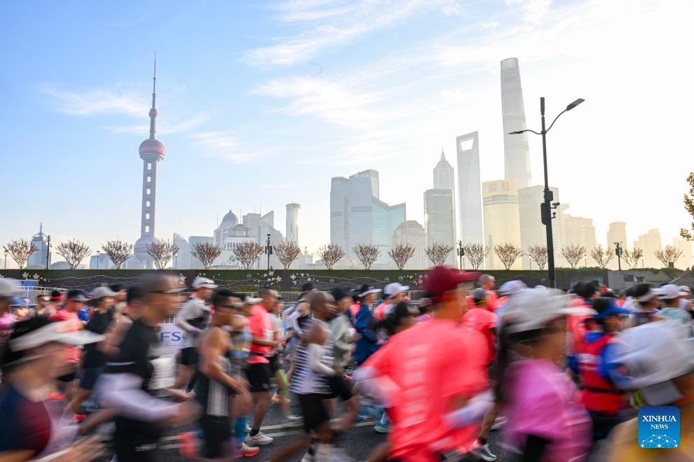 This file photo taken on Nov. 30, 2025 shows participants running during the 2025 Shanghai Marathon in Shanghai, east China. (Xinhua/Chen Haoming)
